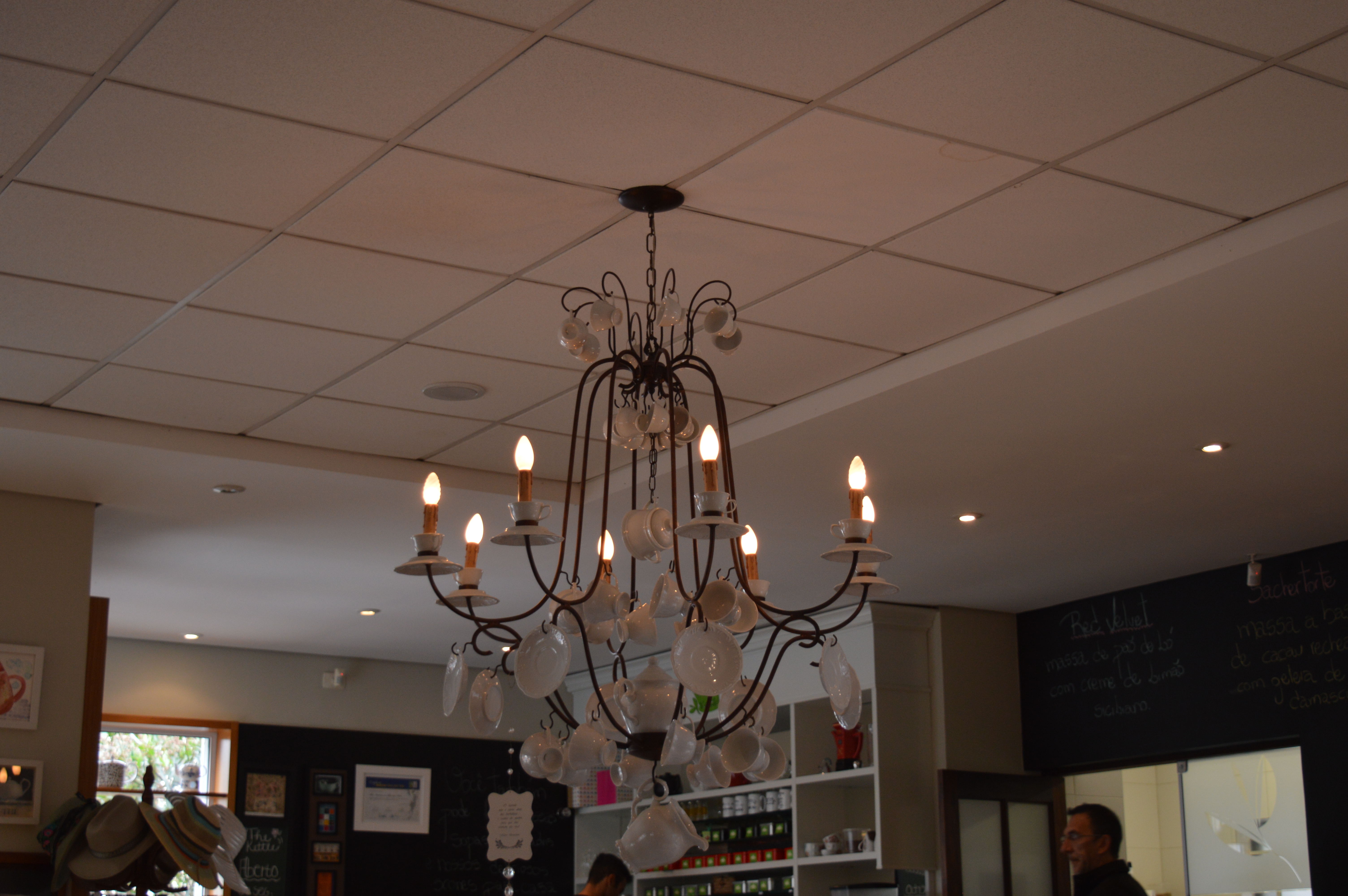 Inside it was surprisingly spacious, to say Brazilian’s aren’t a huge fan of tea. We were the first of a few customers to arrive whilst we were there, and so that combined with the gentle music playing in the background and comfy seating allowed us to instantly unwind. The interior decor was perfect for a tea place: pretty and cosy enough to “ahh” over, but not so twee I felt like I was in a grandparents’ living room. Also check out the ‘chandelier’…