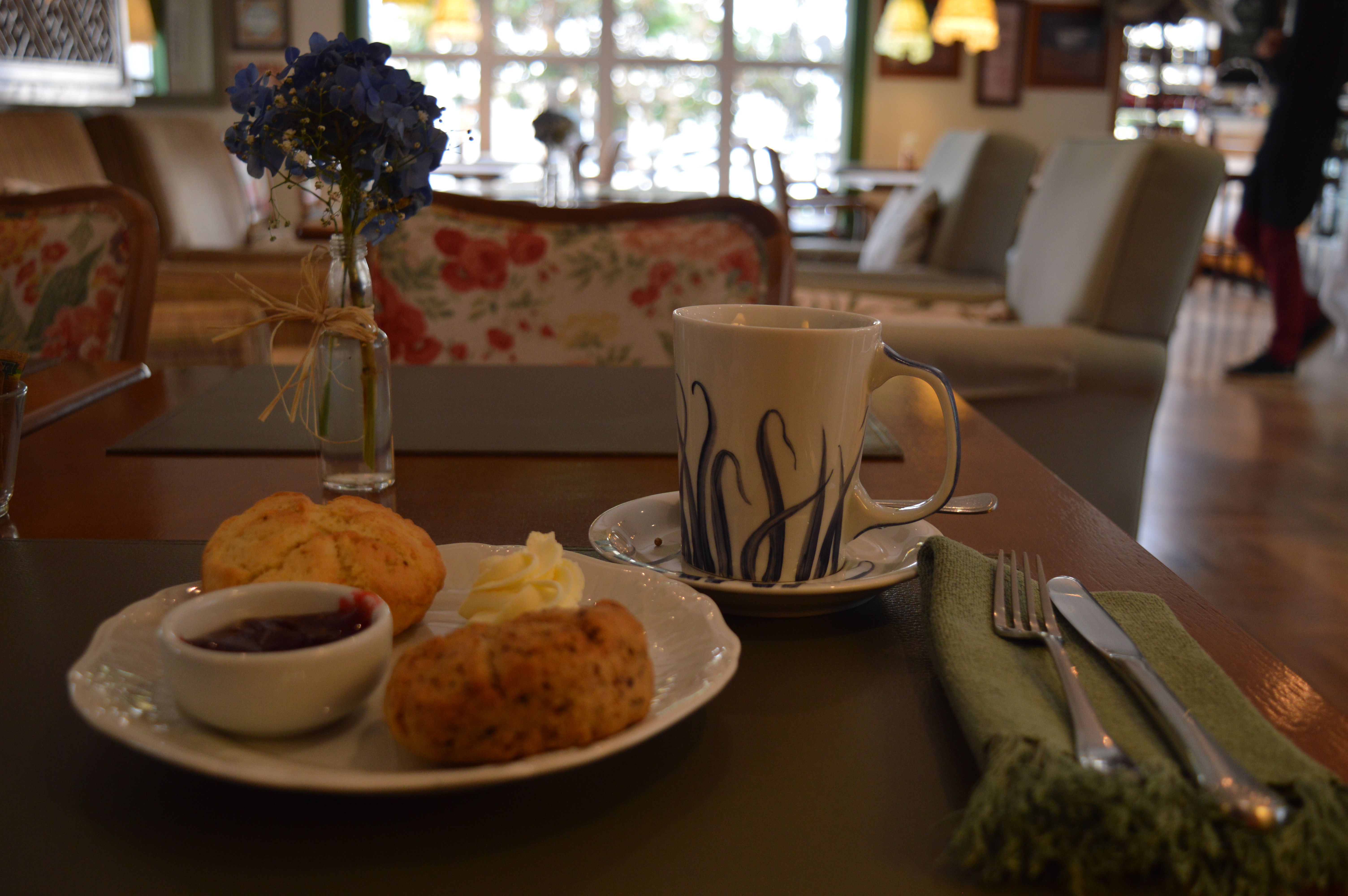 Now, I had travelled for around 30 hours to the land of coffee and was visiting a place for tea, so there was no harm in going that extra British mile, and ordering homemade scones from the menu.